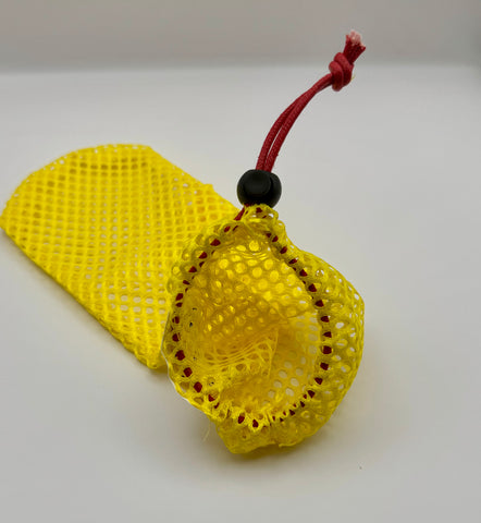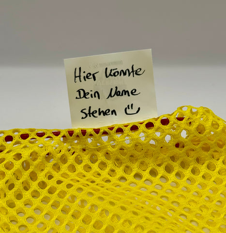 Mit Namensschild und verstellbarer Schlaufe zum befestigen.